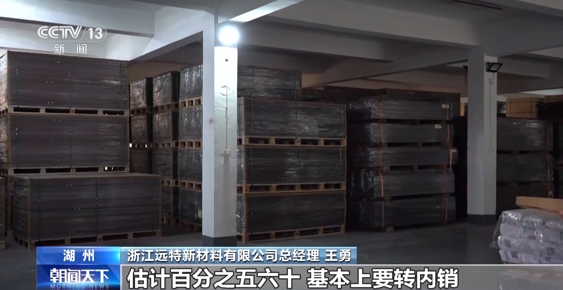浙江远特新材料无限公司总司理 :差不多有四五百吨的库存放正在这里,估量百分之五六十是要转内销的部门,前方的难度很大,是一个挑和。