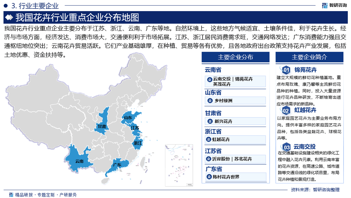 我国花草行业沉点企业次要分布于江苏、浙江、云南、广东等地。天然上,这些处所天气适宜、土壤前提佳,利于花草发展。经济取市场方面,经济发财、消费市场大,交通便当利于市场拓展。江苏、浙江居平易近消费需求旺,交通收集发财;广东消费能力强且交通枢纽地位凸起;云南花草商业活跃。它们财产根本雄厚,正在种植、商业等各有劣势,且各地出台政策支撑花草财产成长,包罗地盘优惠、资金搀扶等。