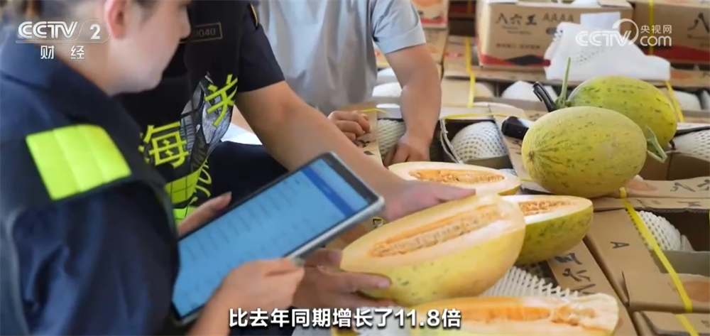 正在湖南常德,一串串阳光玫瑰葡萄提前进入出口旺季,它们将陆运至深圳蛇口港,再通过海运发往东南亚和中东地域;正在新疆吐鲁番,采摘后的哈密瓜正在颠末冷库的2天预冷后,全程冷链运输出口。