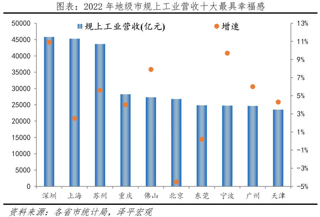 党的二十大演讲提出,“高质量成长是全面扶植社会从义现代化国度的首要使命”。高质量成长是满脚人平易近夸姣糊口需要的内正在要求,因而,提拔居平易近的幸福感指数,对于提拔人平易近获得感和幸福感、实现高质量成长的最终目标至关主要。我们正在《中国十大最具幸福感城市2023》研究演讲中对全国除港澳台外的337个地级及以上城市幸福感指数进行了客不雅排名,南京、杭州、长沙、合肥、舟山、芜湖、姑苏、宁波、大连、珠海位居前十。按照我们建立的城市幸福感指数评价系统,生态、经济、社会是影响居平易近幸福感的三个主要维度。幸福正在哪里?哪里最幸福?NO1。南京:六朝古都,交通枢纽,教育资本丰硕。1)南京地处中国东部、长江下逛,濒江近海,天气宜居,地舆优胜,名胜奇迹浩繁,城市绿化程度高。2)经济成长潜力庞大,人平易近物质糊口程度不竭提高,2022年,南京市人均P17。9万元,居全国第六、中国省会城市第一。3)交通便当,公共根本设备完整,教育资本丰硕,城镇化程度较高。南京高档教育资本集中,具有8所211大学、12所双一流大学,国度沉点学科数量全国第三。NO2。杭州:汗青底蕴取现代活力交汇之城,新经济繁荣成长。1)杭州地势平展,水域资本丰硕,生态优良,全年市区空气优秀率83。3%,丛林笼盖率达65。3%。2)经济实力强劲,数字经济取保守经济深度融合,2022年,杭州数字经济焦点财产添加值占全市P比沉超27。1%。3)连结强劲的生齿虹吸效应,城镇化程度不竭提拔。杭州生齿增速呈放缓趋向,城镇化率仍正在提拔,2022岁暮杭州常住生齿1237。6万人,增量位居全省11个地级市之首。NO3。长沙:夜经济、新消费之都,房价调控榜样生。1)长沙位于湖南省中部,群山环抱,湖光山色,具有4000多年汗青和丰硕文化底蕴,市区和周边地域保留着很多宝贵古建建和汗青文化遗址。2)夜经济兴旺成长,城乡成长平衡,城乡居平易近收入差距持续缩小。2022年,长沙夜经济零售总额占全市社会零售额六成摆布。3)糊口成本正在二线城市中较低,房价调控为全国“榜样生”。2022年,长沙房价收入比8。9,正在全国沉点二线城市中排名第六。较低的房价和经济压力对年轻人、高本质人才构成庞大吸引力。NO4。合肥:抢抓新兴财产成长机缘,计谋性新兴财产兴起。1)合肥生态优秀,空气质量优秀率达86。0%,2023年通过国度天气标记认证,成为首个“中国天气宜居城市”省会。2)计谋性新兴财产帮力合肥经济快速兴起,14年时间P规模从破千亿到破万亿,2023年上半年,P增速达7。4%,进入全国前20名城市之列。3)有序推进城市规划和扶植,为居平易近糊口供给优良的物质前提和糊口,科教资本丰硕度不高,但做到了精而专,2021年中国科技十项严沉冲破中,合肥占领四席。NO5。舟山:宜居宜业的千岛之城,人均收入居浙江之首。1)舟山是独一入围十大最具幸福感城市的四线城市,位于浙江省舟山群岛,四面环海,海岛景不雅末路人,冬暖夏凉,海域水产资本十分丰硕,渔业发财。2)全体经济体量不大,但人均P、人均可安排收入程度较高,2022年,舟山人均P16。7万元,居浙江省第1、全国第8,跨越了杭州和宁波。3)社会治安优良,生态质量优秀。舟山PM2。5年平均浓度仅14微克/立方米,空气质量优秀率97。8%,正在沉点城市空气质量排名第三。NO6。芜湖:安徽第二城,财产布局持续优化,高端制制业堆积。1)芜湖山川环抱,风光秀丽,素有“半城山半城水”之称,文化底蕴深挚,是中国汗青文假名城和江淮水乡代表之一。2)省内经济实力仅次于合肥,高端制制业集聚。2022年,芜湖P总量达4502。1亿元,经济总量仅次于合肥,城乡收入差距较小,城乡可安排收入比为1。8,低于全国平均程度。3)生齿不变增加,生齿吸附能力强。得益于经济成长、房价劣势、人才招引和安设政策,2022年,芜湖常住生齿较2021年增加1。6%,生齿增速全国排名第三。NO7。姑苏:工业强市,房价收入比合理。1)姑苏地处江南水乡,具奇特的天然风光取地区特色,是中国汗青文假名城之一,具有丰硕的古建建、文化遗址和博物馆等汗青文化景点。2)依托工业强市劣势,经济实力远超南京位居全省第一,居平易近收入程度仅次于一线城市。姑苏房价收入比仅12。4,糊口成底细对较低。3)城建程度20强城市之一,交通设备、城市办理、教育资本等为市平易近供给优良保障。江苏省教育发财的城市之一,具有多所优良初中和高中,高中教育实力正在江苏省处于较高程度。NO8。宁波:江南水乡取海港之城,糊口节拍舒服,包涵性强。1)宁波地处水网地带,世界第四大口岸城市,浙江省八洪流系之一,天气温润,四时分明。2)浙江省第二大经济城市,长三角万亿城市之一,城乡成长较均衡,2022年P总量15704。3亿元,同比增加3。5%;2022年,宁波城乡居平易近人均可安排收入倍差1。7,持续18年呈缩小态势。3)交通便当,社会保障取配套办事齐备。宁波建立了市域1小时交通圈、长三角城市2小时交通圈,交通“降堵”成效显著,不竭巩固交通畅畅劣势,提拔居平易近的获得感和幸福感。生齿增速东北第一。1)大连地处辽东半岛南端,属于暖温带半潮湿季风天气,是东北地域最温暖的地域,漂亮,三面环海,舒服宜居。2)做为副省级城市,经济总量和增速均跨越省会沈阳,2022年,大连P总量8430。9亿元,比沈阳高735。1亿元,位居全省第一。3)常住生齿增速东北第一,高档教育资本正在打算单列市、非省会城市中称霸,人均