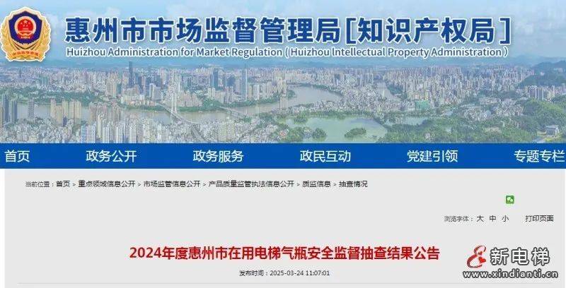 广东惠州市市场监视办理局发布的《2024年度惠州市正在用电梯气瓶平安监视抽查成果通知布告》显示,2024年全市共抽查正在用电梯1,177台,此中不及格数量达268台,不及格率为22。77%。此次抽查成果反映了惠州市正在用电梯的平安现患问题,特别是室第小区和写字楼的电梯不及格率较高,需进一步加强监管和。